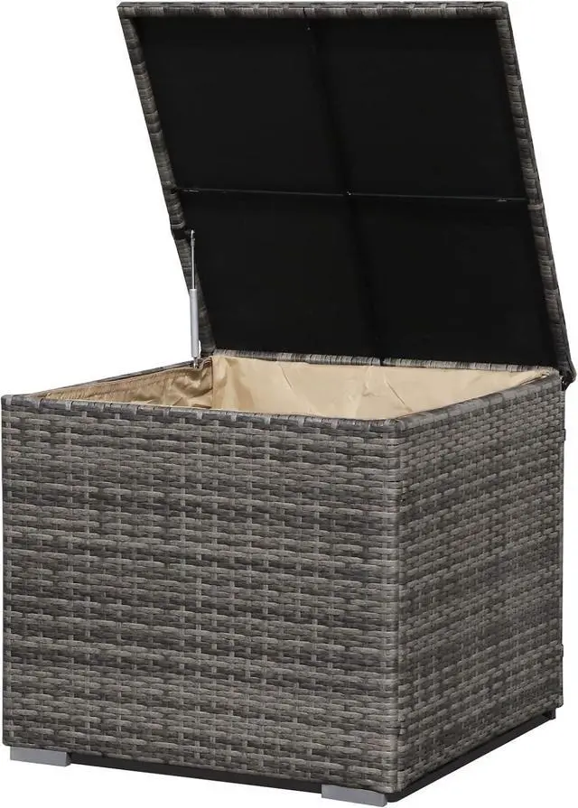 Superior Material: The outdoor storage box is made of high quality powered-coated iron frame and all-weather PE rattan, featuring sturdy, durable, crack and rust-resistant. The deck box will keep items dry and clean even in rainy and humid outdoor environments.