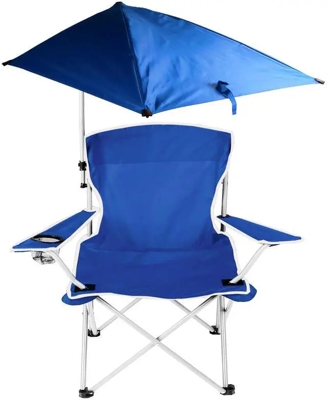 Come with an umbrella on the top, our foldable canopy chair is suitable for you to enjoy the shade and breeze at park, beach, pool, backyard, camp site or other outdoor places. Silver-coated Oxford fabric prevents strong UV and provides you with cool shade in a hot summer day. The heavy duty steel greatly improves its durability and reliability. This chair is particularly designed into foldable style, easy to store and carry. Set up quickly, can be opened and folded within seconds and packs easily back into its carry bag for storage or travel.