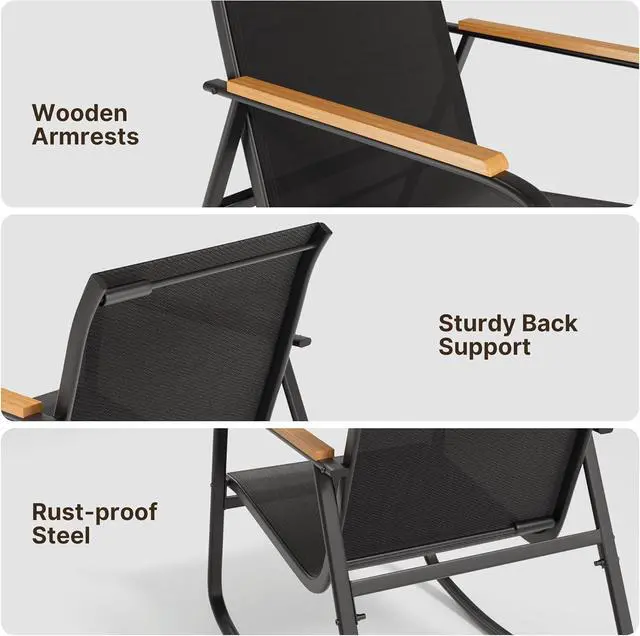 Smooth Rocking Experience: Featuring a back and forth gentle rocking motion, the patio chair set will be an ideal for you to enjoy the breeze and sunshine while forgetting about fatigue. With a non-slip bottom to ensure your safety while rocking
