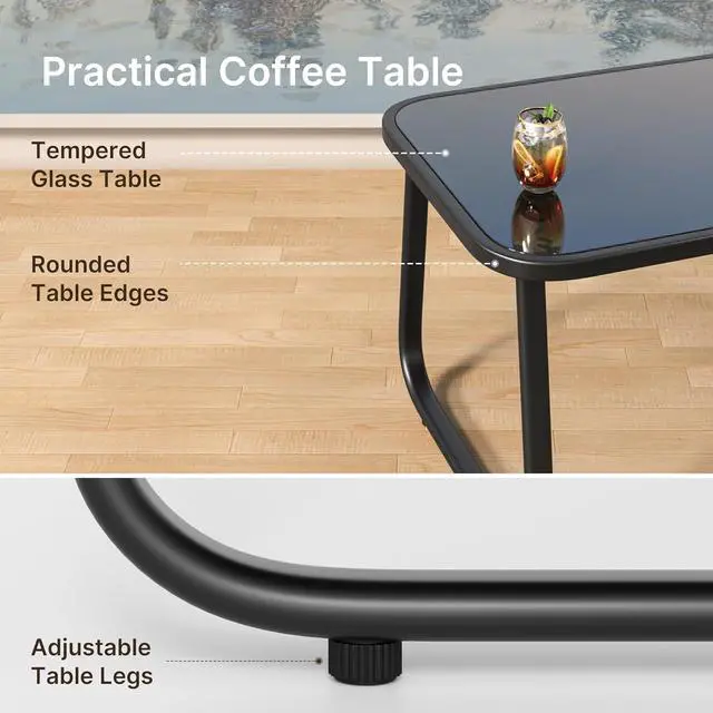Stable and Safe Design: Our patio set boasts a reinforced backrest frame, the backrests are slightly curved to better fit your back, providing excellent support for your shoulders and back, ensure a safe, delightful outdoor experience for you