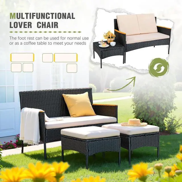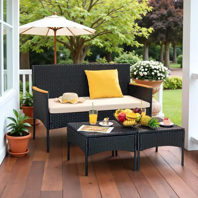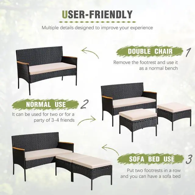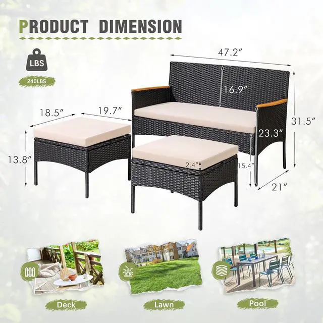 MULTIFUNCTIONAL OUTDOOR USE: Perfect for creating a comfortable lounge area in your backyard, poolside, patio, balcony, sunroom or covered porch. Weight capacity: 265 lbs (bench) + 265 lbs(ottoman)