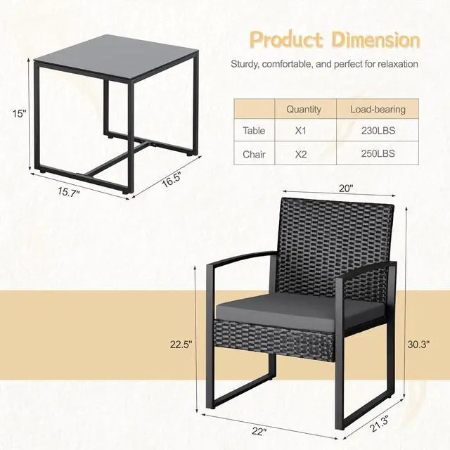 VERSATILE: Simple and stylish appearance can make the bistro set suitable for a variety of scenarios, patio, garden, terrace, poolside, balcony can be decorated by it, adding a stylish atmosphere