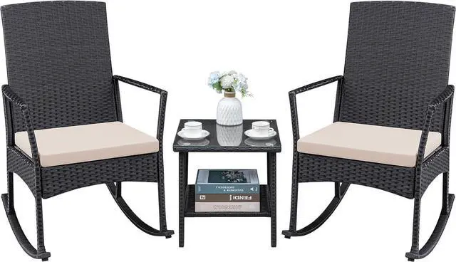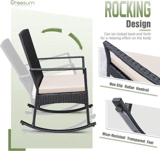 Outdoor Wicker Rocking Chairs: The curved legs give this outdoor furniture a rocking function, allowing you to enjoy relaxing moments outdoors in the sunshine.
