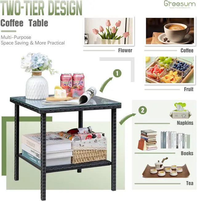Two-Layer Coffee Table: The double-tiered coffee table design makes for a better use of space on the table, you can put down more of the things you use outdoors.
