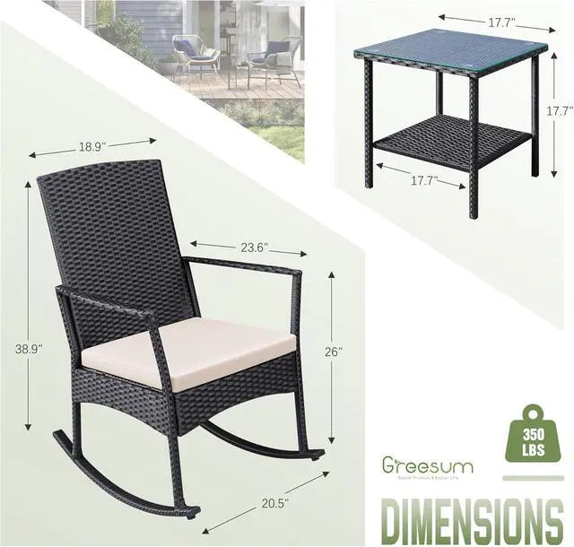 Classic Rattan Material: Made of weather-resistant rattan material, comes with two waterproof cushions to extend the life of outdoor furniture.
