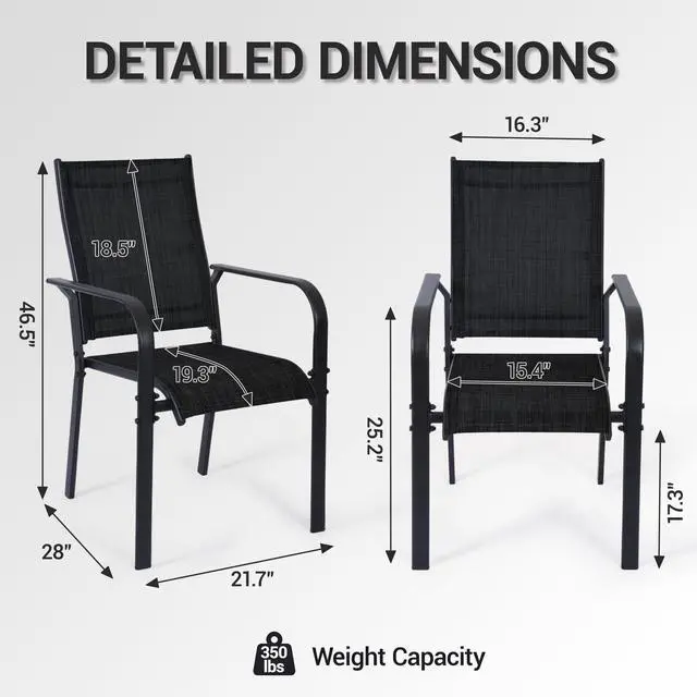Versatile and stylish, these outdoor chairs blend seamlessly with various patio furniture chairs and outdoor décor, offering a comfortable seating option for everyday relaxation or dining.