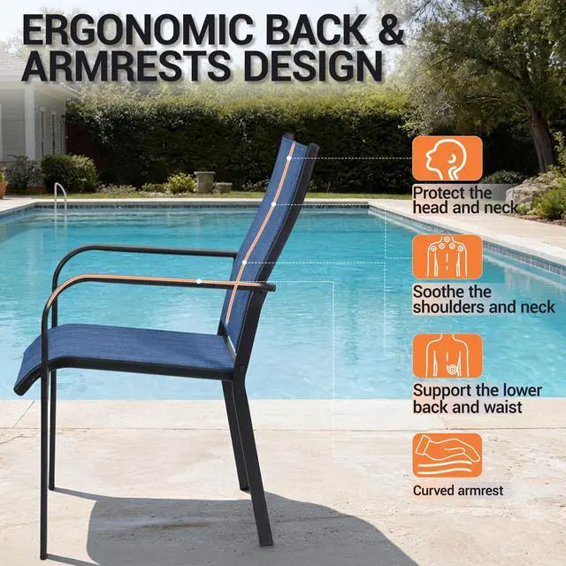 Versatile and stylish, these outdoor chairs blend seamlessly with various patio furniture chairs and outdoor décor, offering a comfortable seating option for everyday relaxation or dining.