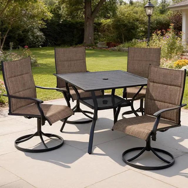 Versatile and stylish, these outdoor swivel chairs blend seamlessly with various patio furniture chairs and outdoor décor, offering a comfortable seating option for everyday relaxation or dining.