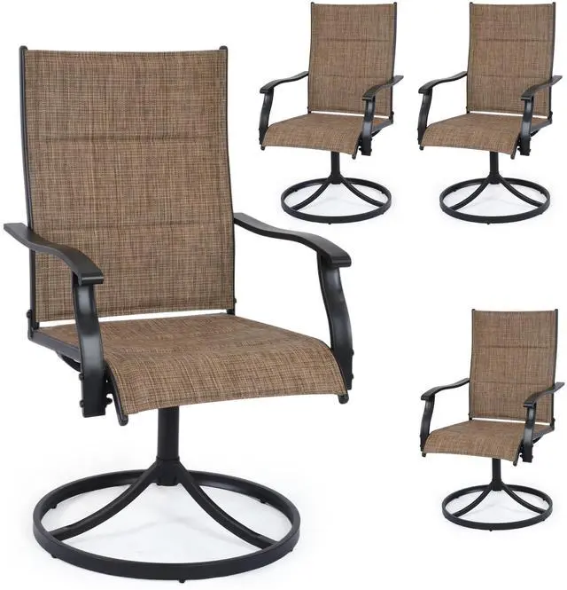 VANBOW Patio Swivel Chairs, Outdoor Dining Chairs High Back, All-Weather Textilene Swivel Rocker Chair for Lawn Porch Garden Brown Set of 4