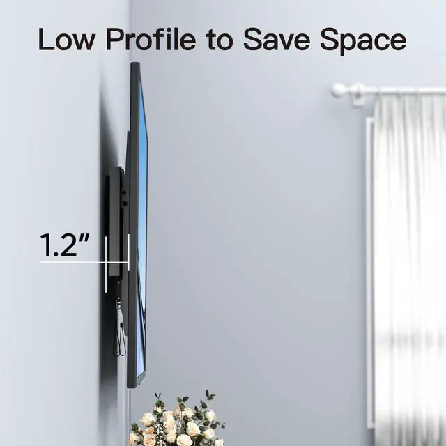SAVE SPACE: Keep your TV close to the wall to save space. This low-profile wall mount holds the back of the TV just 1.2" from the wall for a sleek appearance. The tilting design includes convenient pull cord locking mechanisms for easy locking or releasing of the TV from the wall plate.