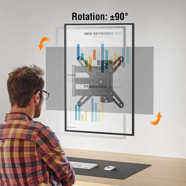 ±90° Rotation & Swivel Design - With the ±90° rotation unique design, the full motion TV mount can easily display in landscape or portrait position to meet your special needs. Additionally, this swivel TV mount can swivel ±90° to cover any angles in your home for the ultimate viewing experience.