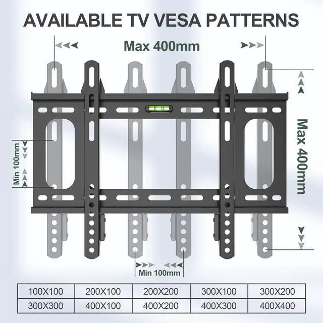 Universal Fixed TV Mount: This flat TV mount is compatible with most 23"-55" LED/LCD TVs, featuring a maximum VESA of 400x400mm.