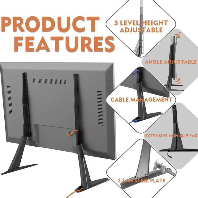 FIRM STRUCTURE: Constructed of heavy-duty steel to support TVs up to 125 lbs, this replacement stand ensures the stability of TVs up to 55 inches. It prevents tilting and shaking after installation, significantly enhancing safety for households.