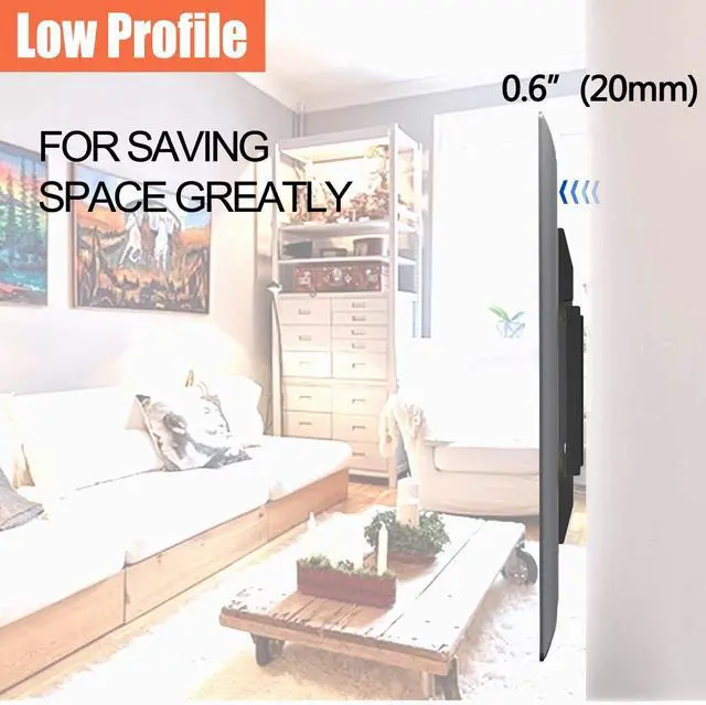 SAVE SPACE: Low profile tilting holds the TV close to the wall, with the back of the TV staying 0.6" away from the wall for a clean appearance.