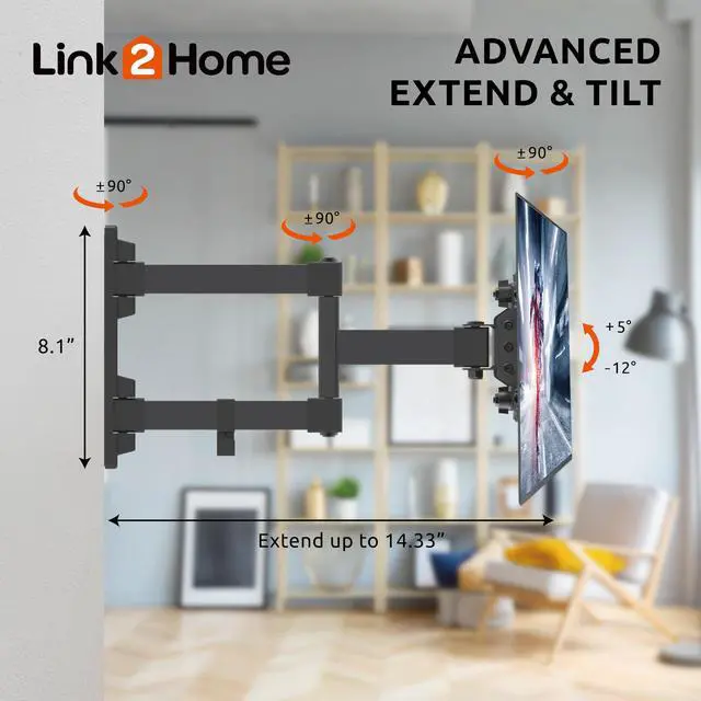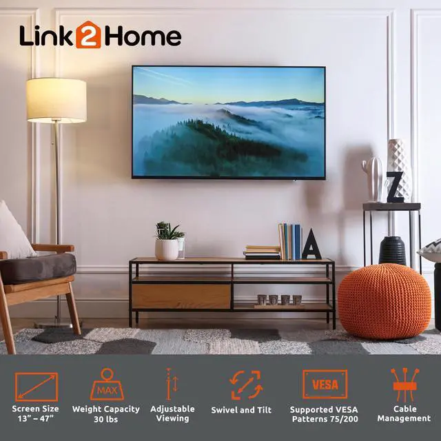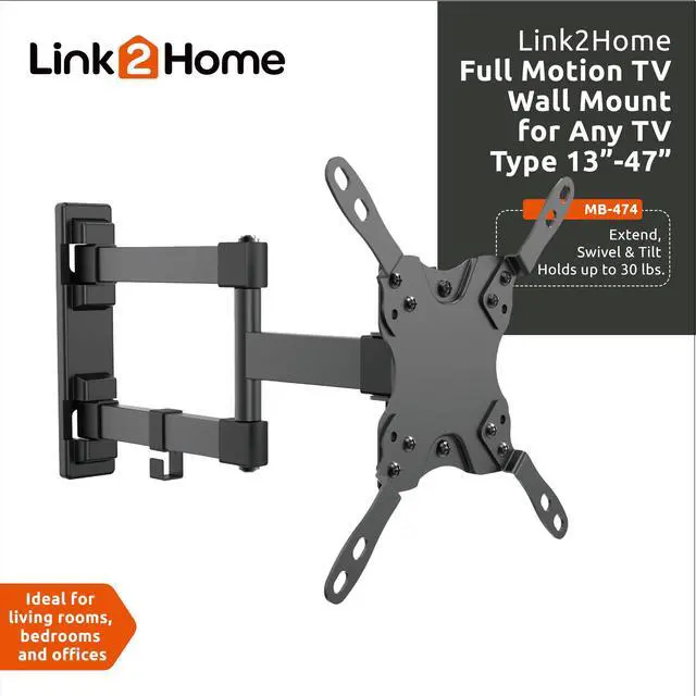 Full Motion TV Wall Mount for 13-47 inch TVs, Mounting Brackets for LED, LCD, OLED Flat&Curved TVs, up to 30 lbs. VESA Patterns 75/200, Articulating Arms Extension and Tilt.