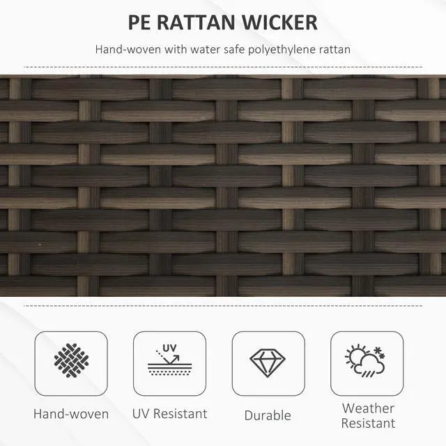 reinforced with a heavy-duty powder-coated steel frame, it can hold more weight without warping. Portable and Easy to Carry: The two side handles of this deck box bench let you easily carry it from your mudroom to your garden and back. Grab hold of the lightweight bench and bring the items you stored inside with you. You can flip the seat up using the two hinges to access your secret storage space when you need it. All-Weather Set: Our outdoor sectional furniture set is made with handwoven PE rattan, a material with all the tropical style of classic wicker with superior resistance to UV and weather. Also, a water-safe powder-coated steel frame reinforces the sofa, allowing for a high weight capacity. 27 Gallon Rattan Deck Storage Bench Info: Overall Dimensions: 43.25" W x 17.75" D x 20.25" H. Weight Capacity: 352 lbs. Internal Load-bearing Capacity: 110 lbs.