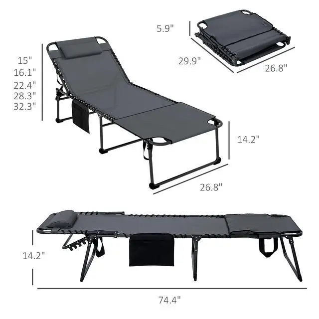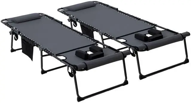 • 2 Piece Folding Chaise Lounge with 5-level Reclining Back, Outdoor Tanning Chair with Reading Face Hole, Outdoor Lounge Chair with Side Pocket & Headrest for Beach, Yard, Patio, Gray