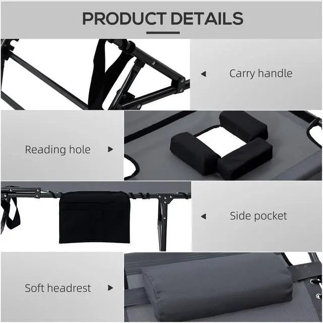 Outdoors Ready: A combination of breathable mesh fabric and strong steel frames with a water-safe powder-coated finish make our sun tanning chair set able to endure outdoor conditions with ease.