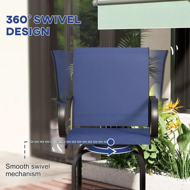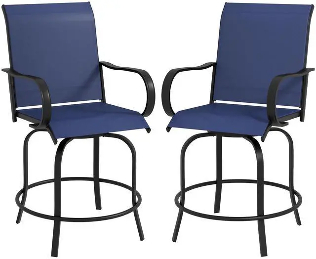 Outdoor Swivel Chair Set: Swivel and spin up high and outside. Our set of two patio bar chairs is fun and functional, with a 360 spin and a seat that reaches to your existing patio bar table. 2 Swivel Bars Stools with