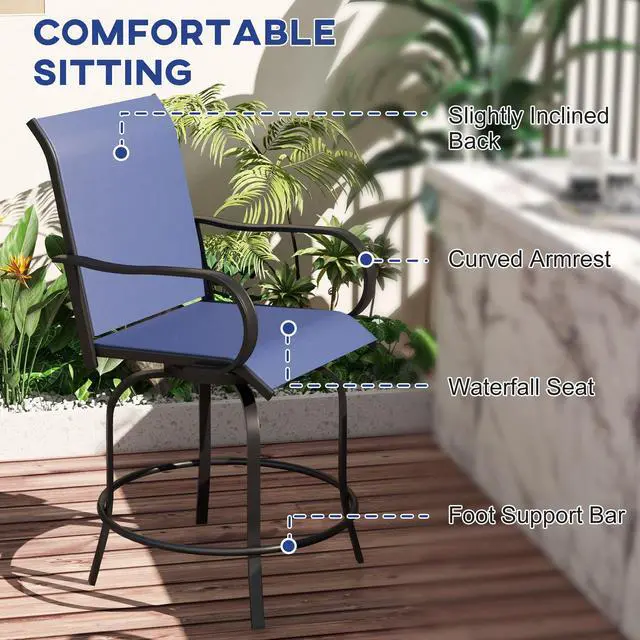 Cool & Breathable Chairs: Feel the breeze. High-density mesh fabric makes our outdoor bar stools breathable enough to keep you cool in the summer sun.