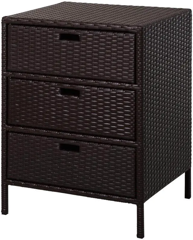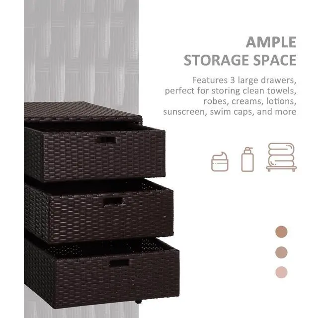 3 Drawers: Keep clean towels, robes, sunscreen, swimcaps, pool supplies, and more outside. Three large compartments with easy-grip handles make our wicker outdoor pool towel storage cabinet easy to organize.