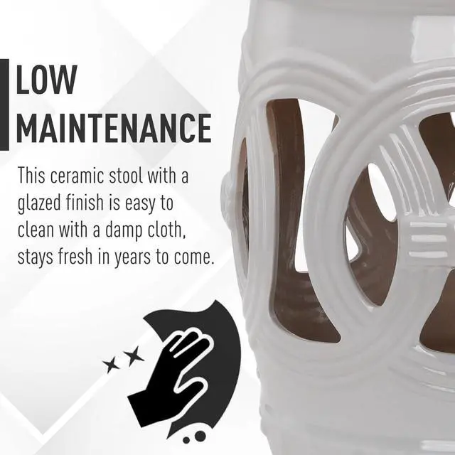 Outdoor Ceramic: This outdoor garden stool is crafted of high-quality ceramic fired at temperatures of up to 2, 192 degrees F to make it sturdy enough to last year-round use.