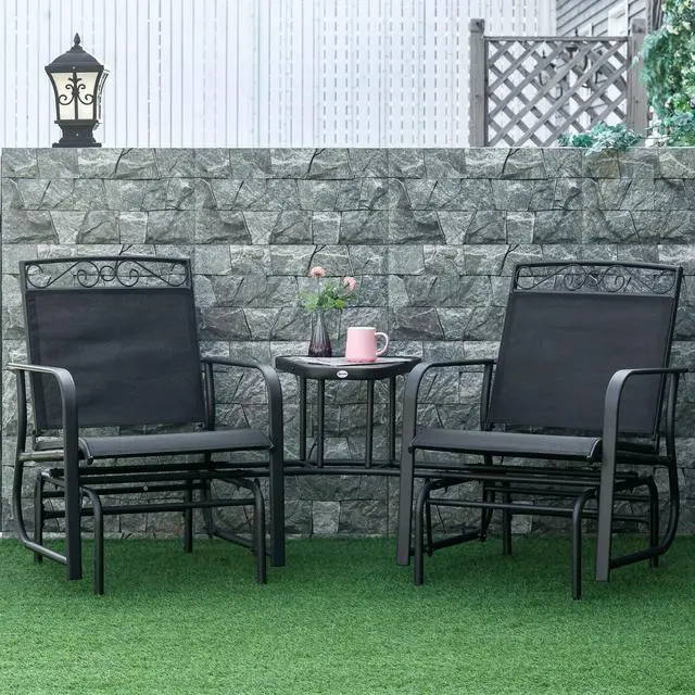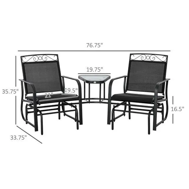 Convenient Center Table: Bring your drinks, food, books, or other items along as you relaxingly glide in your outdoor chairs, knowing the center table is there to keep your belongings from falling off.