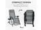 there's a place for your phone, too. Trays on each rocking chair offer cup holders, slots, and a place for snacks. Outdoor Ready: Our reclining rocker holds up under pressure with a strong steel frame and a powder-coated finish to support 265 lbs. of total weight while still being water safe. Zero Gravity Chair Info: Upright Position: 47.25" L x 26.5" W x 40.25" H. Fully Reclined: 52.25" L x 26.5" W x 37.5" H. Folded: 43.5" L x 26" W x 6" H. Rocking Amplitude: 10°-35°. No assembly is required.