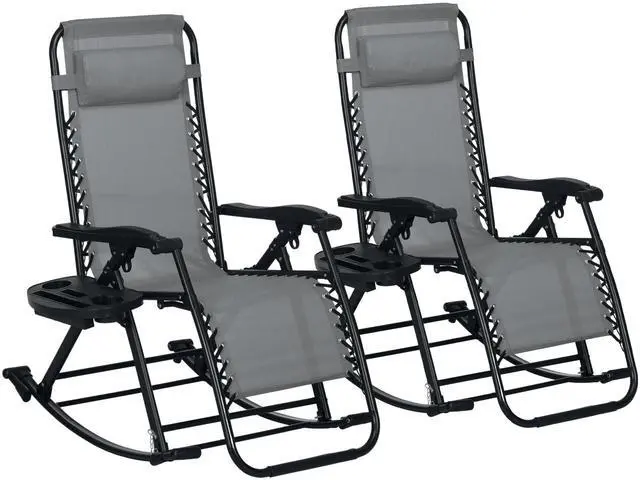 Zero-Gravity Reclining Rocker: Our outdoor rocking lounge chair is a recliner or standing chair with a footrest. Enjoy rocking, laying, or sitting with bungee suspension, cool, breathable fabric, and a pillow. Folding Rocking Chairs: Set up, tear down, and store fast. With a folding frame, you can keep zero-gravity comfort in your car. Rocking Chairs with Cup Holder Tray: Zero gravity rocking comfort isn't all