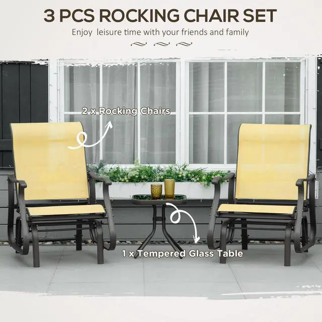 All Occasions: This porch glider set includes two patio gliders and a tea table, perfect for the porch, garden, or patio and offers a great place to relax during the day or for an intimate evening outside.