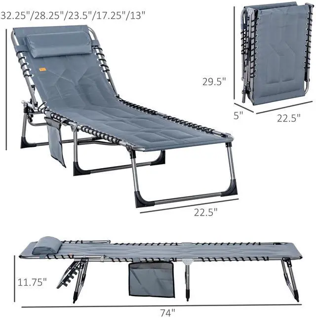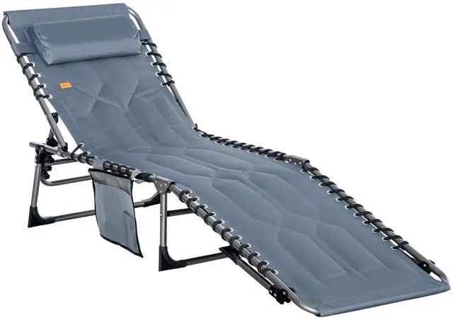 Outdoor Lounge Chair: Take a seat under the sun. Our outdoor lounge chair boasts a cozy cotton-padded seat and a supportive pillow headrest. A storage pocket keeps your items nearby, bringing comfort and peace of mind. Recliner Lounge: Our out lounge chair lets you select from five backrest positions to find your favorite tanning angle. As the sun moves throughout the day, customize to optimize sunbathing or keep comfortable adjusting for pressure. Folding Lounger Chair: Our outdoor lounge chair offers convenience. With its lightweight design, it's easy to transport and store. Embrace comfort wherever you go
