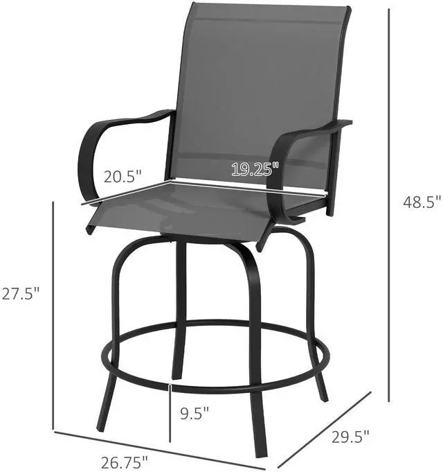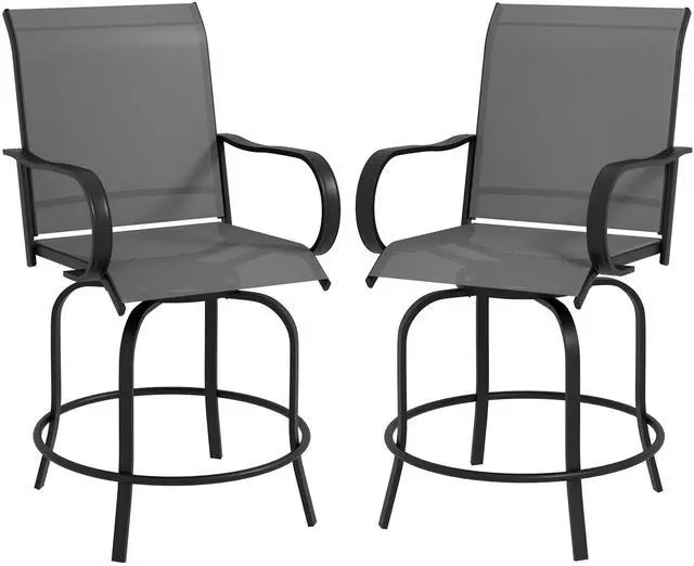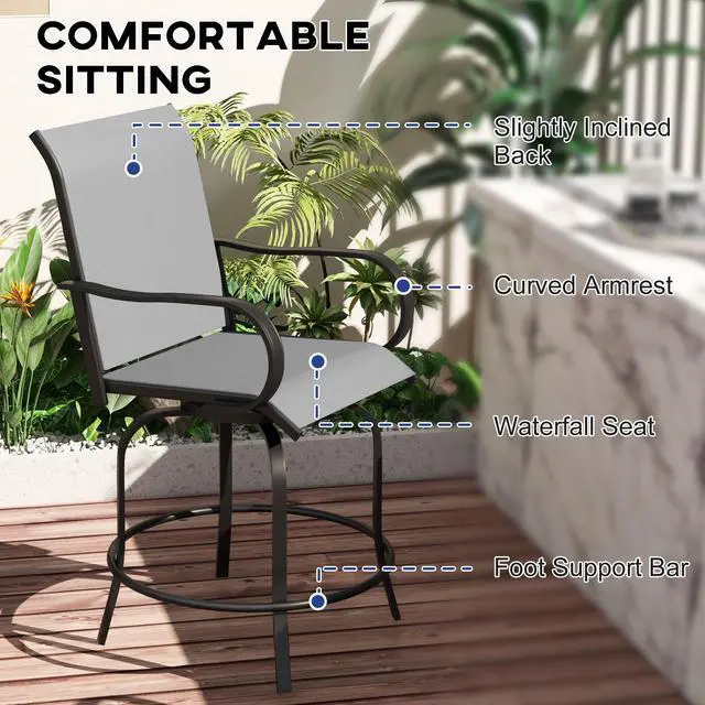 • Outdoor Bar Stools with Armrests, Set of 2 360° Swivel Bar Height Patio Chairs with High-Density Mesh Fabric, Steel Frame Dining Chairs for Balcony, Poolside, Backyard, Gray