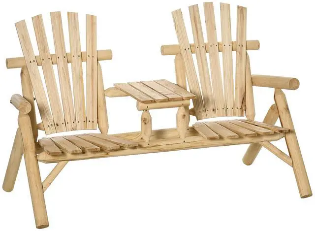 • 2-Seat Wooden Adirondack Chair, Patio Bench with Table, Outdoor Loveseat Fire Pit Chair for Porch, Backyard, Deck, Natural