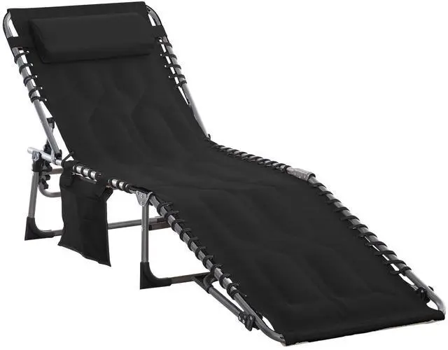 Outdoor Lounge Chair: Take a seat under the sun. Our outdoor lounge chair boasts a cozy cotton-padded seat and a supportive pillow headrest. A storage pocket keeps your items nearby, bringing comfort and peace of mind. Recliner Lounge: Our out lounge chair lets you select from five backrest positions to find your favorite tanning angle. As the sun moves throughout the day, customize to optimize sunbathing or keep comfortable adjusting for pressure. Folding Lounger Chair: Our outdoor lounge chair offers convenience. With its lightweight design, it's easy to transport and store. Embrace comfort wherever you go