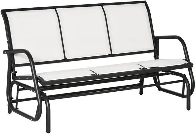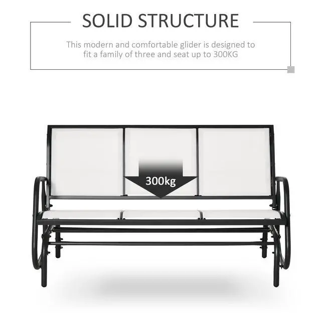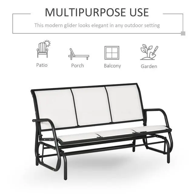 • 3-Person Patio Glider Bench, Outdoor Porch Glider Swing with 3 Seats, Breathable Mesh Fabric, Metal Frame, Cream White