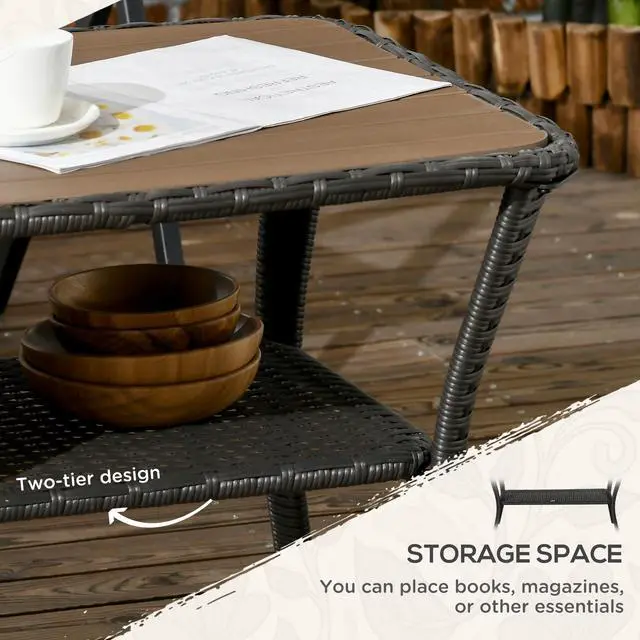 Storage Space: With a convenient bottom shelf, our outdoor wicker table offers extra storage for books, magazines, or other essentials. Keep your living area organized and clutter-free, while having everything you need within reach for a comfortable and enjoyable experience.