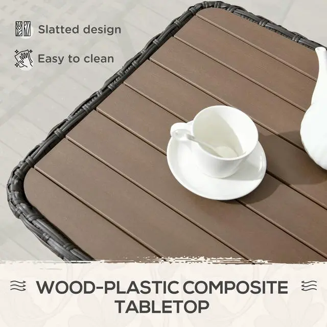 Stylish Elegance: Our wicker coffee table features a stunning wood-plastic composite top, adding a touch of sophistication to any space. Elevate your decor and create a focal point that impresses guests and enhances your overall esthetic.
