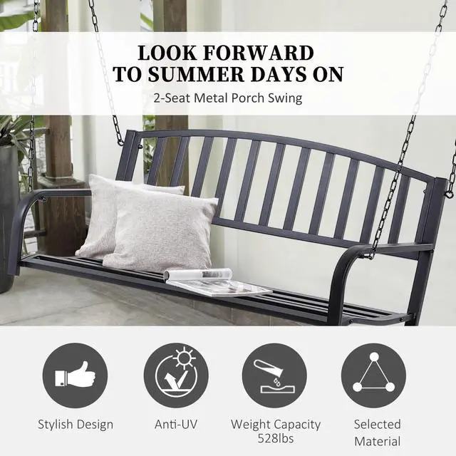 Outdoor Ready Materials: Our garden swing is made of solid powder-coated steel, which has been hand-selected to endure the outdoors. The powder coating provides a level of water protection with a sleek and elegant black finish.