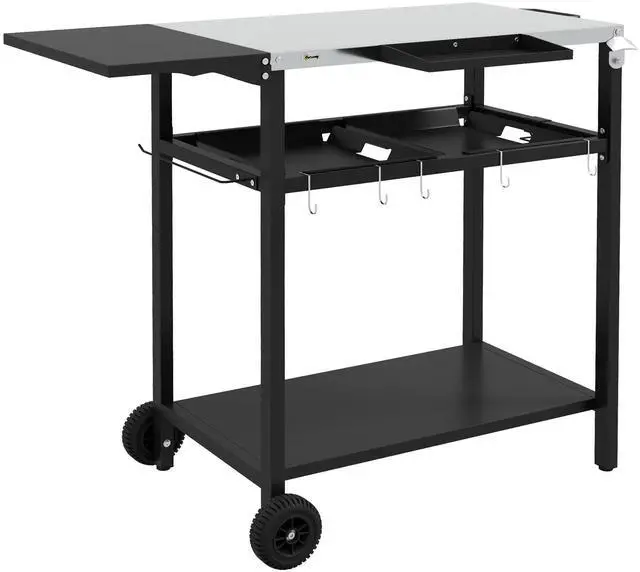 An Outdoor Bar Cart: With a sleek, stainless steel surface and a powder-coated steel frame, our outdoor kitchen cart was specifically engineered to endure water and weather without damage.