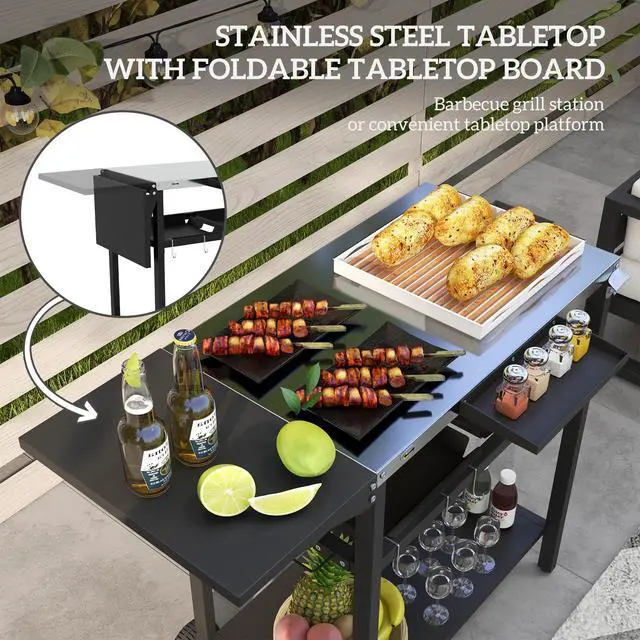 Functional Table: A foldable table ensures that our outdoor bar cart minimizes space for travel and maximizes surface space. It can be used to help you prepare food, making it an excellent portable grill station.