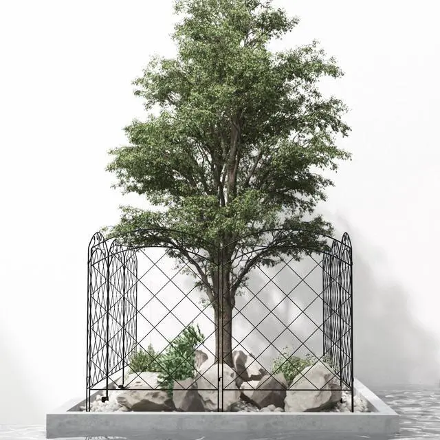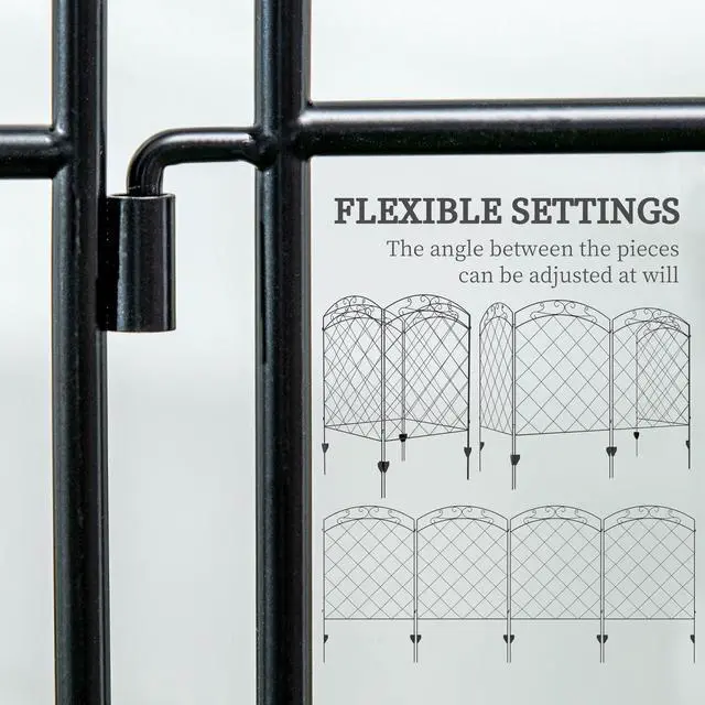 Decorative Garden Fence: These garden border fence panels have a simple grid-based setup. They feature black arched vines to bring a quick decorative touch to your garden. 4-Panel Outside Fence: This decorative garden fence comes with 4 panels per purchase, measuring 34.75" x 43.25" high. Each set of panels can reach a maximum of 11.4' long