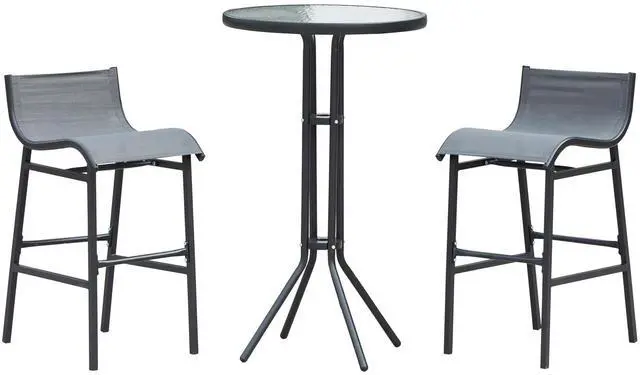 • 3 Piece Bar Height Outdoor Bistro Set for 2, Round Patio Pub Table 2 Bar Chairs with Comfortable Design & Strong Build, Charcoal Gray