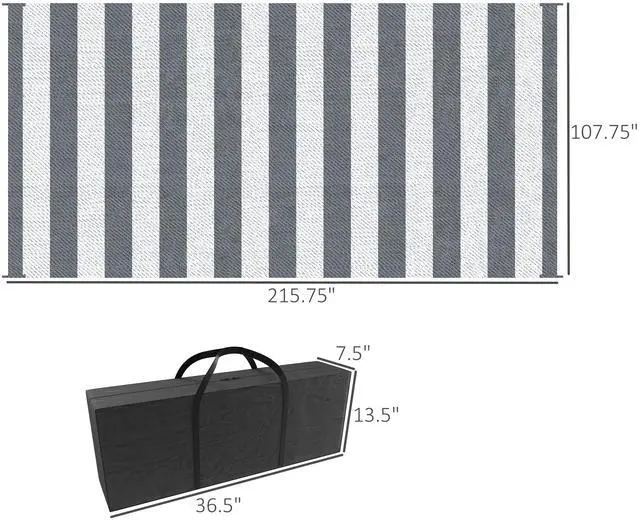 Reversible Patio Rug: Our waterproof outdoor rug / RV mat features a reversible pattern that you can flip over for a quick clean spot. Compact and portable, it's perfect for camping trips in the RV. Bringing boho style to any area, inside or outside, it's an excellent addition to any location. Outdoor Carpet with Carrying Bag: Our indoor-outdoor camping carpet is lightweight, and portable with a convenient carrying bag. Roll it up and roll it out. This carpet makes a cozy space for camping, picnics, backyard barbeques, RV spaces, or road trips to the beach. Outdoor Ready & Waterproof: Our outdoor camping rug's surface is made of 100% waterproof polypropylene, features reinforced edges to prevent fraying, and is treated so it won't fade in the sun. When your plastic outdoor rug gets dirty, simply wipe it with a wet rag, sweep it off or rinse it with water. With waterproof polypropylene, it won't get saturated and liquid slides right off. Stake It In Place: This outdoor-ready rug comes equipped with four corner loop straps