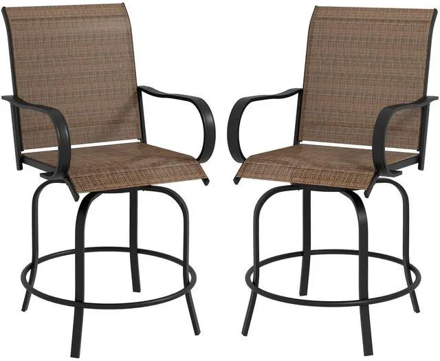 Outdoor Swivel Chair Set: Swivel and spin up high and outside. Our set of two patio bar chairs is fun and functional, with a 360 spin and a seat that reaches to your existing patio bar table. 2 Swivel Bars Stools with