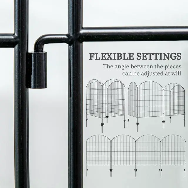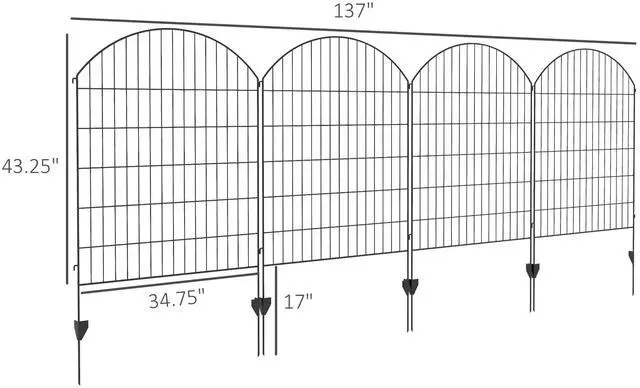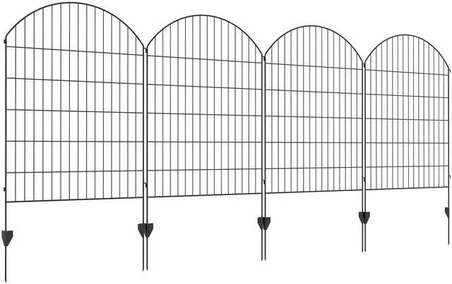 Decorative Garden Fence: These garden border fence panels have a simple grid-based setup. They feature simple black arches to bring a quick decorative touch to your garden. 4-Panel Outside Fence: This decorative garden fence comes with 4 panels per purchase, measuring 34.75" x 43.25" high. Each set of panels can reach a maximum of 11.4' long