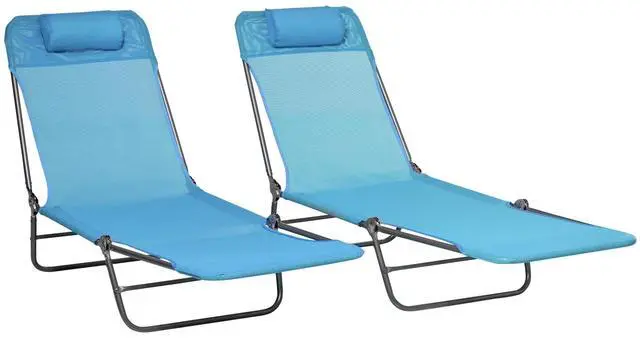 • 2 Piece Folding Chaise Lounge Chairs, Pool Sun Tanning Chairs, Outdoor Lounge Chairs with 6-Position Reclining Back, Breathable Mesh Seat, Headrest for Beach, Yard, Patio, Blue