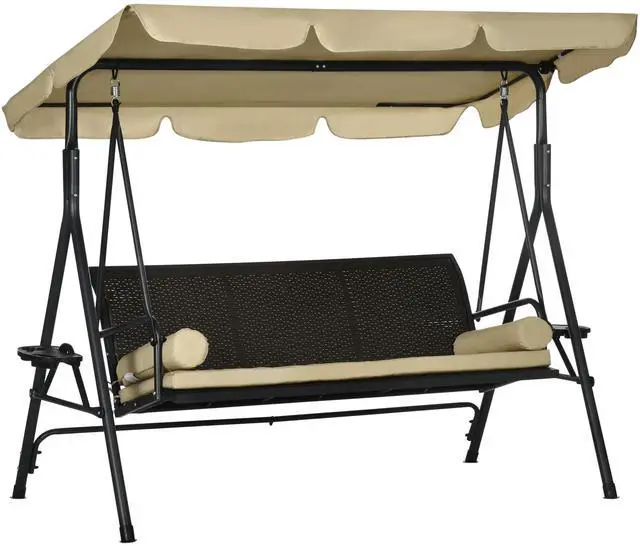 Outdoor Ready Materials: Our outdoor swing seat is made of PE rattan, a material with all the handwoven style of classic wicker but with better resistance to water and weather. Supported with a strong steel frame in the shape of an "A", it's reinforced with form and substance. Also, non-slip footpads are included for a safer swing. Porch Swing with