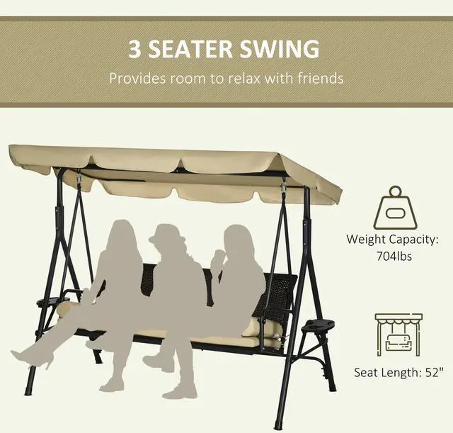 Seats Three Adults: With a 704 lbs. weight capacity and 52" seat length, our porch swing offers outdoor seating for all sorts of occasions, whether it's campfires, cookouts, or a cozy Saturday. With room for three people, step out into the sunlight and enjoy the fresh air together.