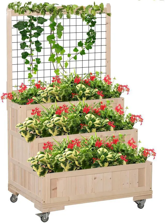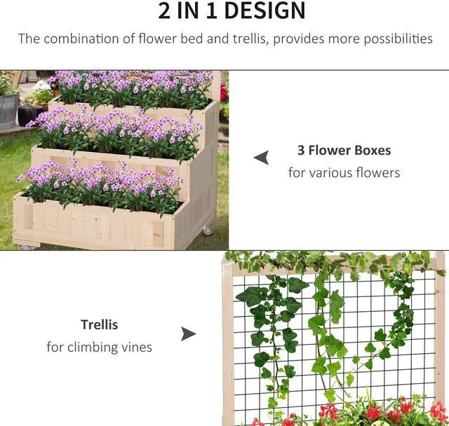 2 in 1 Design: This planter box is composed of a planter and trellis. The 3 bottom boxes can be used for planting and the flower rack at the top can be used for climbing vines. This planter raised bed combination creates tons of creative positivity for your garden