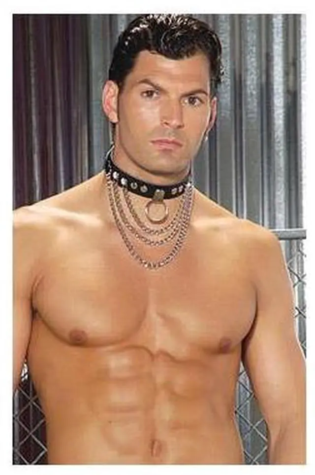 Unleash your fantasies with a sexy leather collar. This erotic leather collar features shiny chains and a sturdy metal ring to enhance erotic game playing. It looks hot with sexy underwear or worn alone.